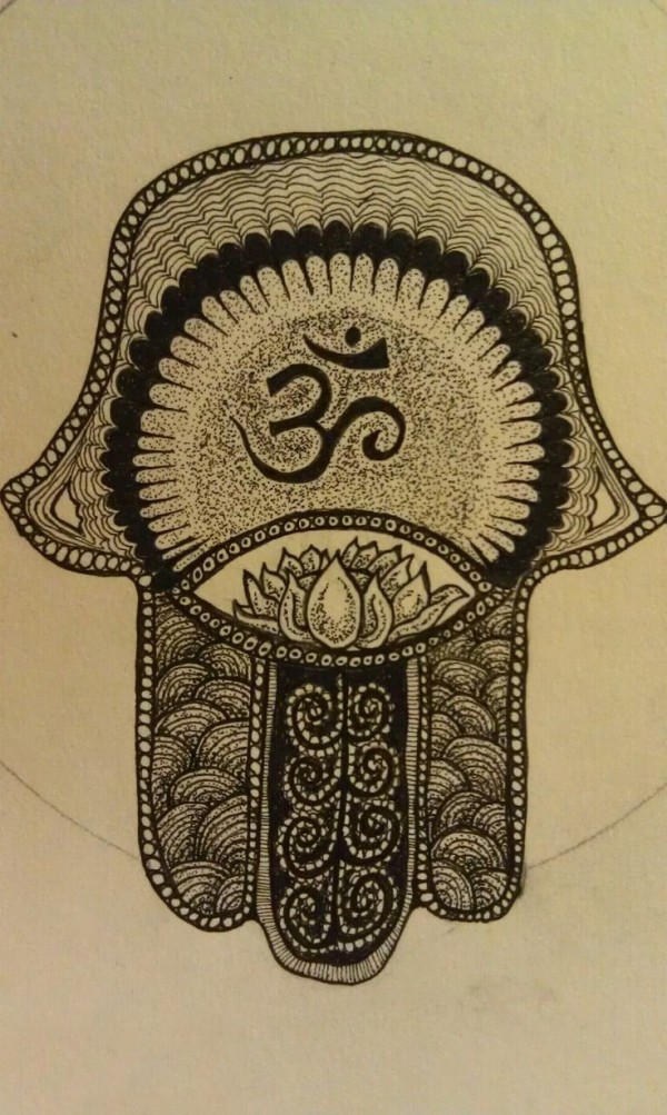 黑灰素描文艺唯美经典神圣法蒂玛之手纹身手稿