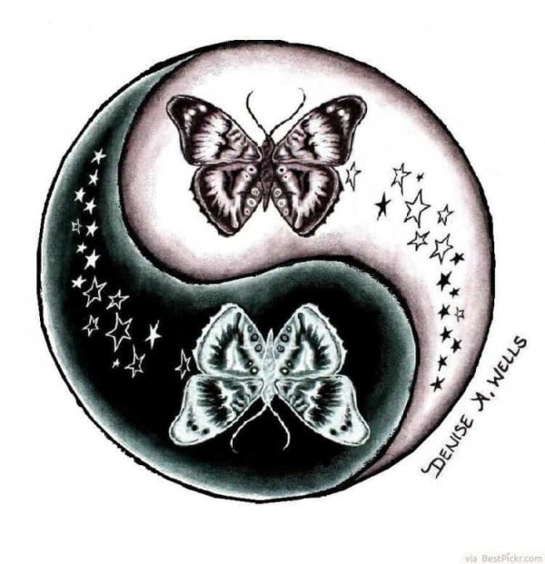黑灰素描文艺唯美蝴蝶阴阳八卦纹身手稿