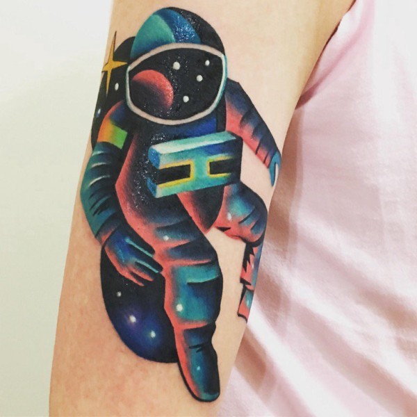 男生手臂上彩绘水彩素描星空元素宇航员纹身图片