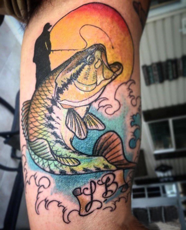 男生小腿上彩绘水彩素描霸气经典鲤鱼纹身图片