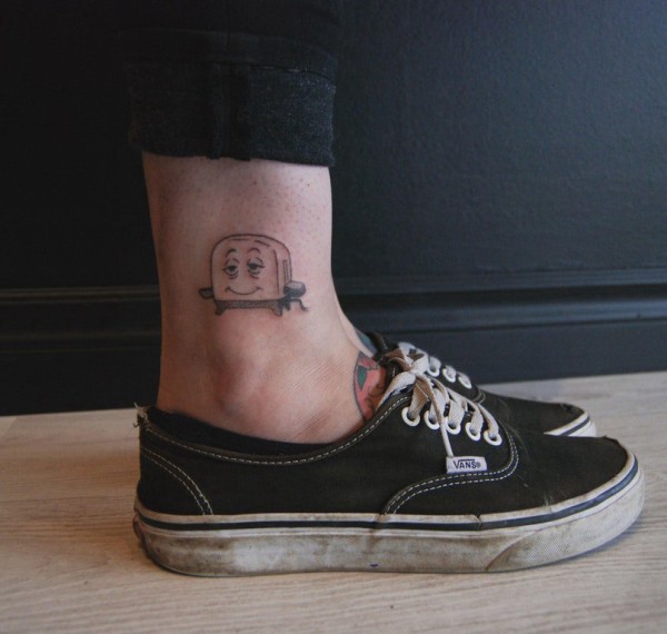 女生脚踝上黑灰点刺简单线条卡通烤箱纹身图片