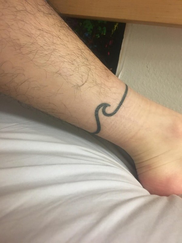 男生小腿上黑色简单抽象线条个性浪花纹身图片