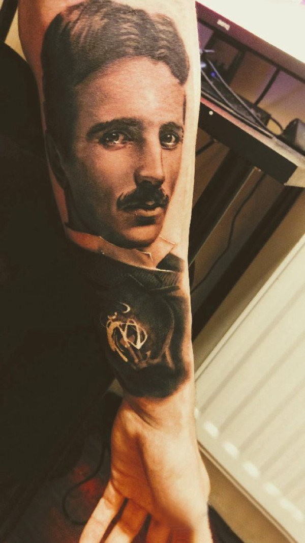 男生手臂上黑灰素描点刺霸气男生人物纹身图片