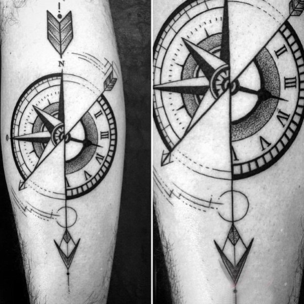 多款黑色线条素描文艺唯美经典复古指南针古典纹身图案