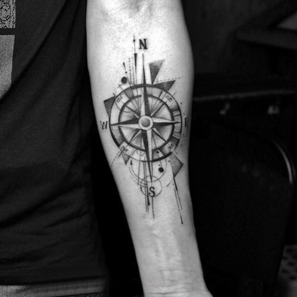 多款黑色线条素描文艺唯美经典复古指南针古典纹身图案