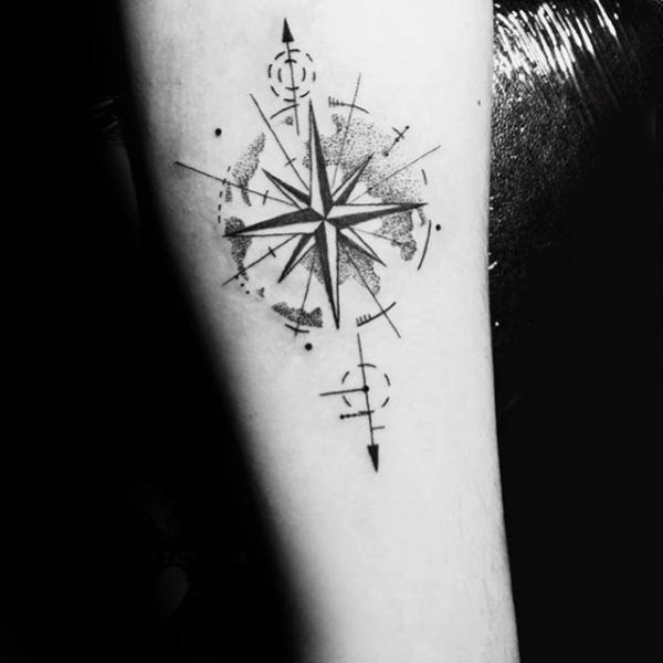 多款黑色线条素描文艺唯美经典复古指南针古典纹身图案