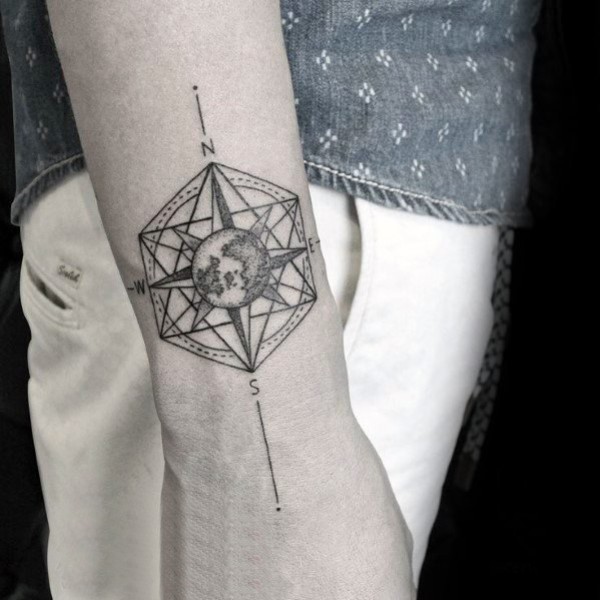 多款黑色线条素描文艺唯美经典复古指南针古典纹身图案
