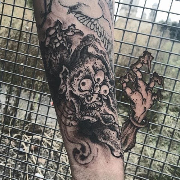 多款黑灰素描点刺技巧创意经典日本传统图腾纹身图案