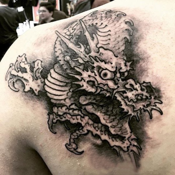 龙纹身手稿_一组老传统黑灰龙手稿纹身图案