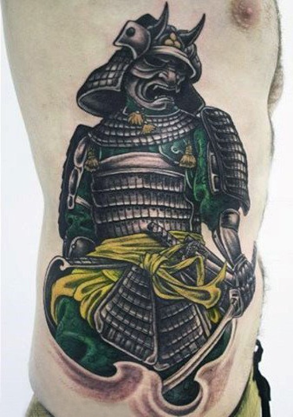 多款黑灰素描点刺技巧霸气精致武士纹身图案