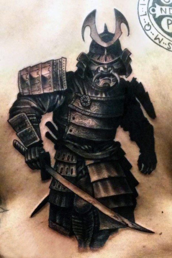多款黑灰素描点刺技巧霸气精致武士纹身图案