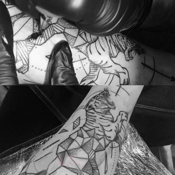 多款黑色线条素描点刺技巧几何元素霸气老虎动物纹身图案