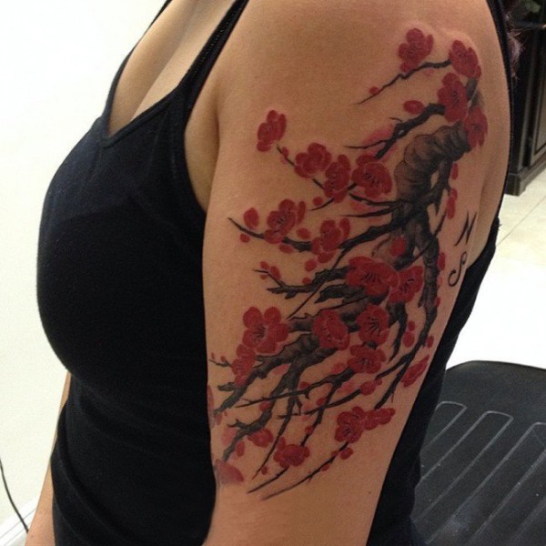 后肩唯美花藤英文图案图片_植物纹身图案大全_纹身图吧