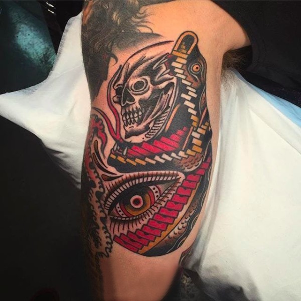 德国恐龙纹身眼镜蛇和卡通鳄鱼纹身水彩动物图案纹身