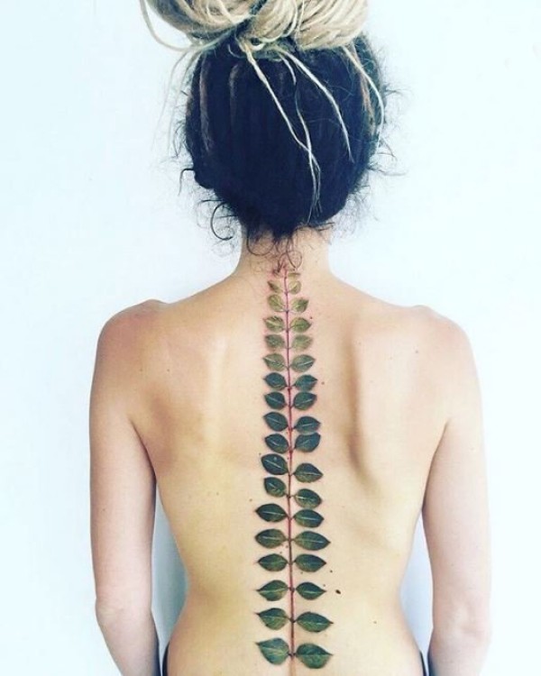 多款背部的线条素描文艺经典的唯美脊椎纹身图案