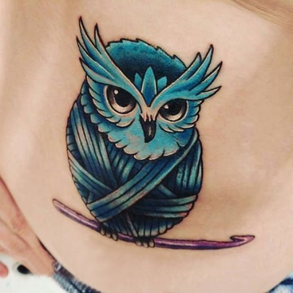 男生胸部彩绘渐变几何线条毛线球和猫头鹰纹身图片