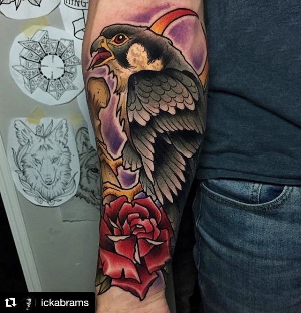 男生手臂上彩绘水彩素描霸气老鹰动物纹身图片