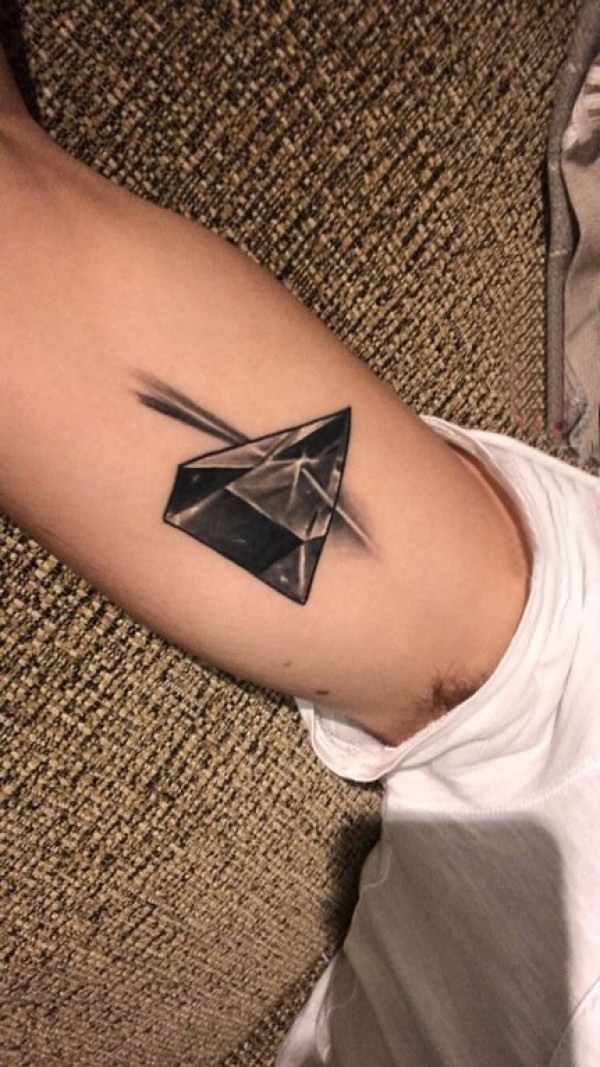 男生手臂上黑灰素描点刺技巧文艺钻石纹身图片