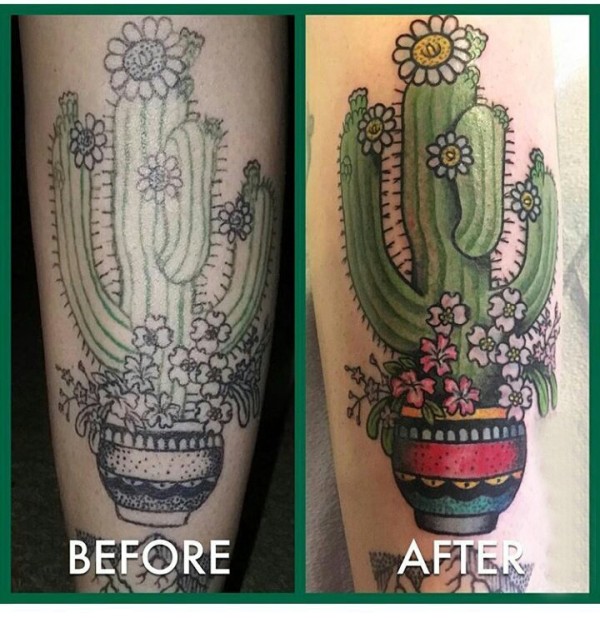 男生手臂上彩绘水彩素描文艺仙人掌纹身图片