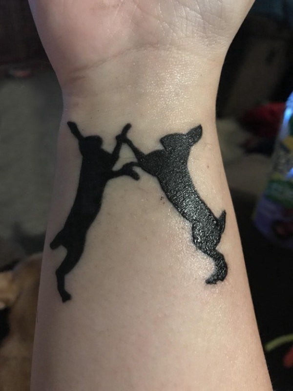 女生手臂上黑色简单线条小动物轮廓兔子纹身图片