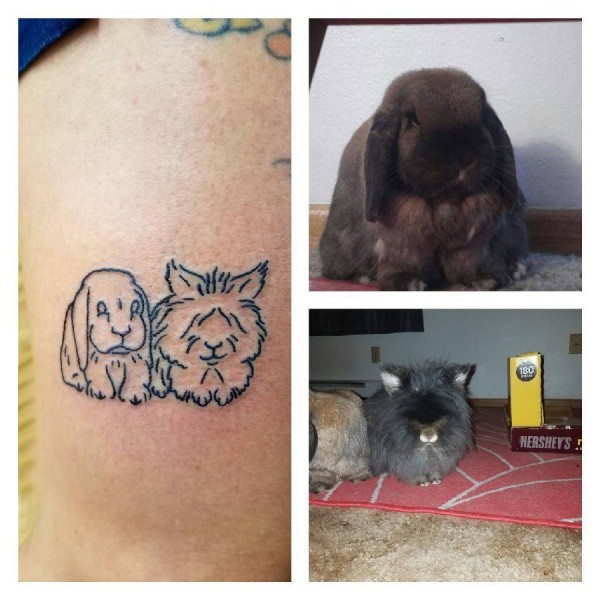 女生大腿上黑色简单线条小动物宠物兔子纹身图片