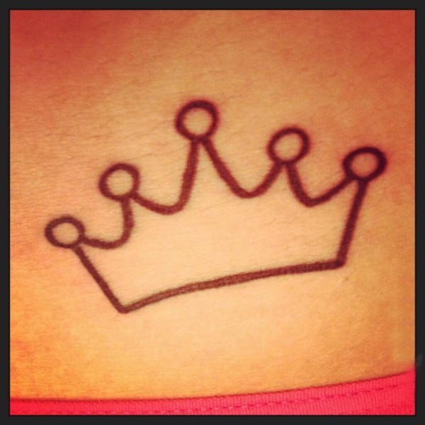 女生侧腰上黑色线条素描文艺唯美皇冠纹身图片