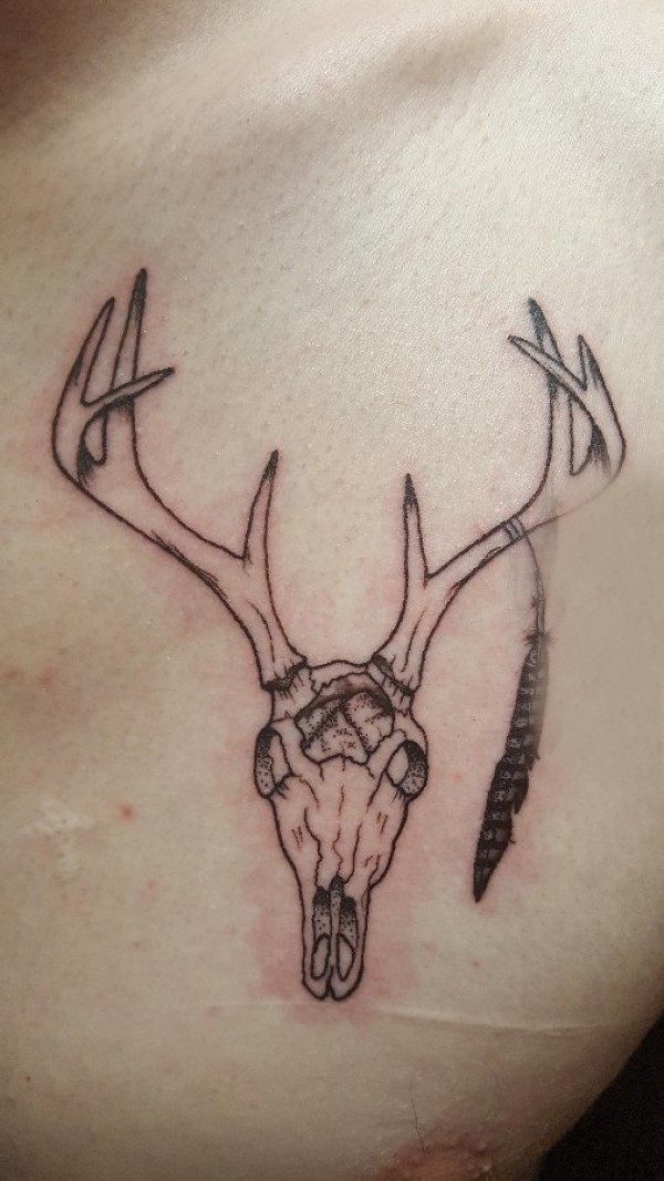 男生肩部黑色点刺简单抽象线条动物鹿头骨纹身图片