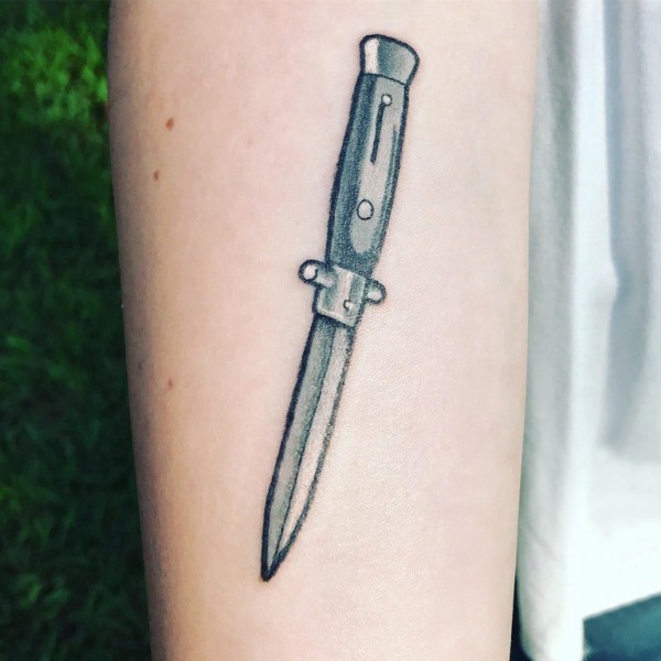 男生手臂上黑灰点刺几何简单线条匕首纹身图片