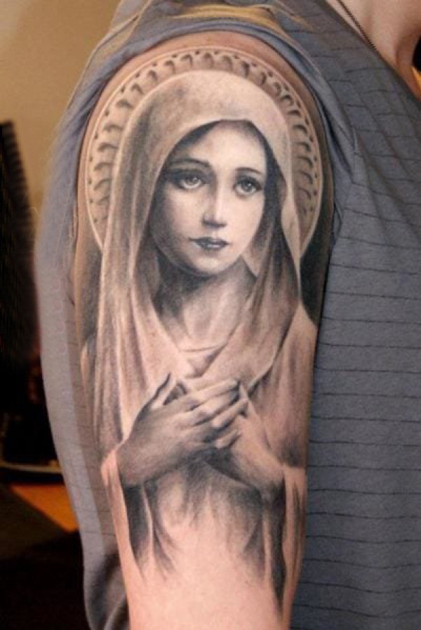 多款黑灰素描点刺技巧霸气经典宗教人物纹身图案