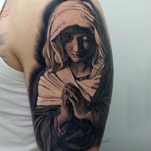 多款黑灰素描点刺技巧霸气经典宗教人物纹身图案