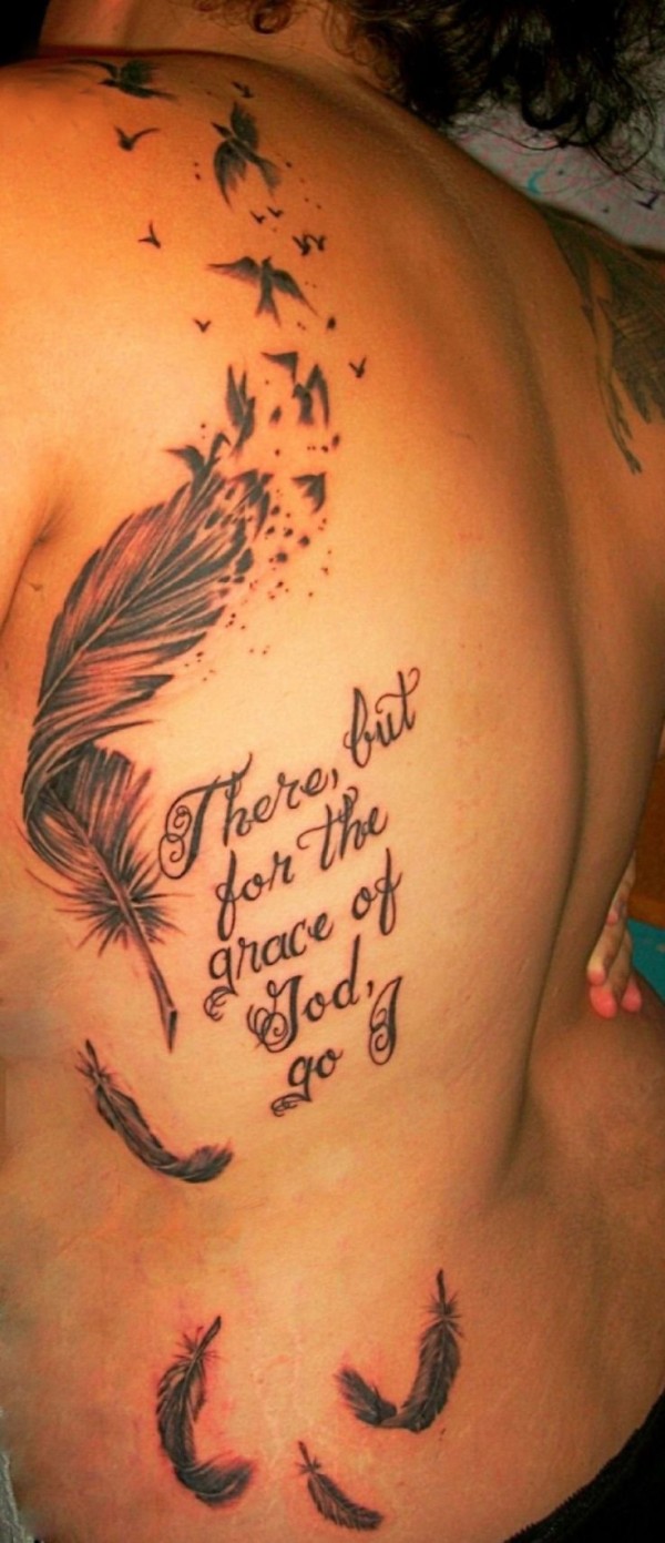 多款背部黑色线条经典文艺唯美有意义花体英文纹身图案