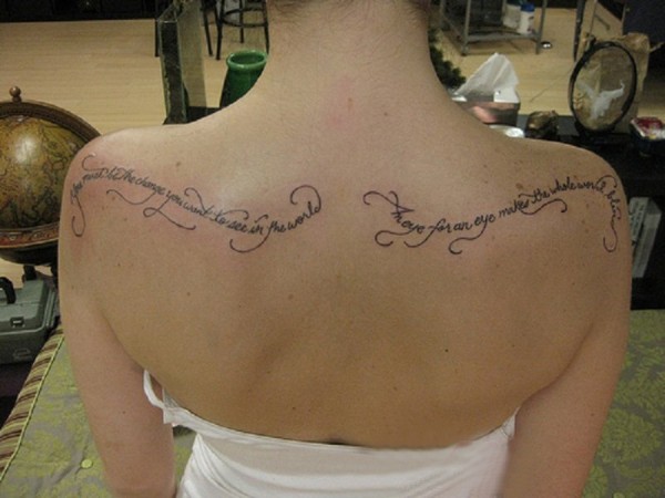 多款背部黑色线条经典文艺唯美有意义花体英文纹身图案