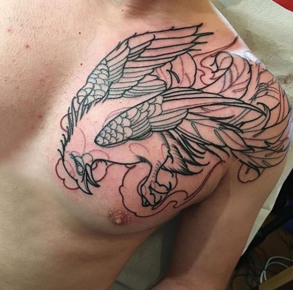 男生胸口上黑色线条素描霸气老鹰纹身图片