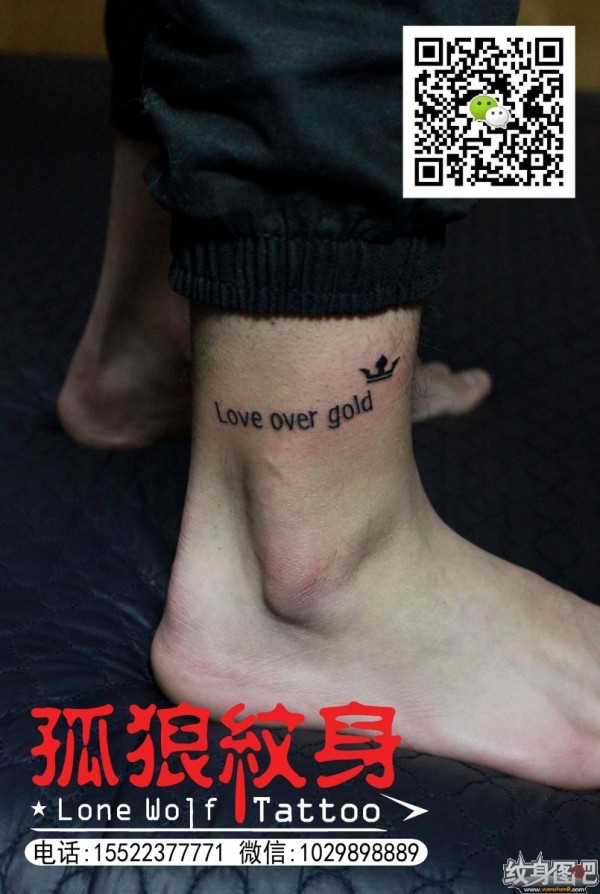 宝坻纹身 脚踝英文小清新纹身 孤狼纹身工作室作品 天津