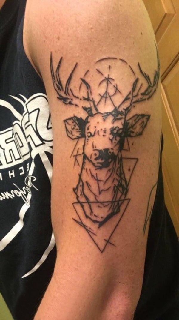 复古鹿头纹身男生手臂上复古鹿头纹身图片