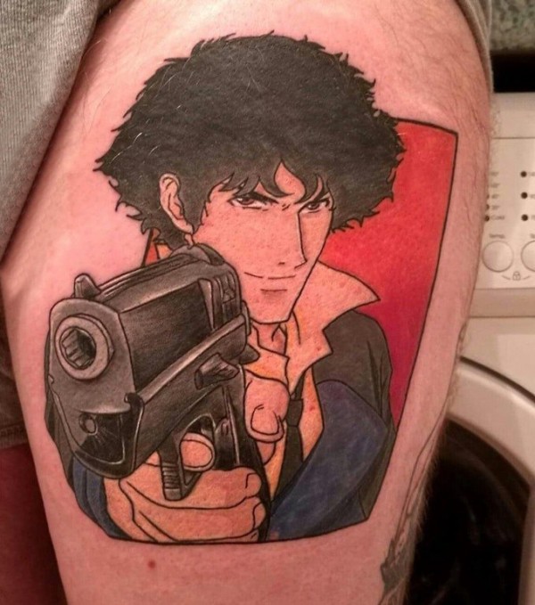 动漫人物纹身男生大腿上彩色的动漫人物纹身图片