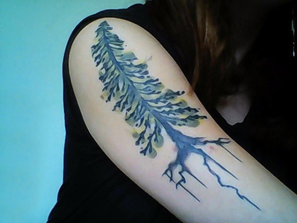 女生手臂上彩绘水彩素描文艺经典树木纹身图片