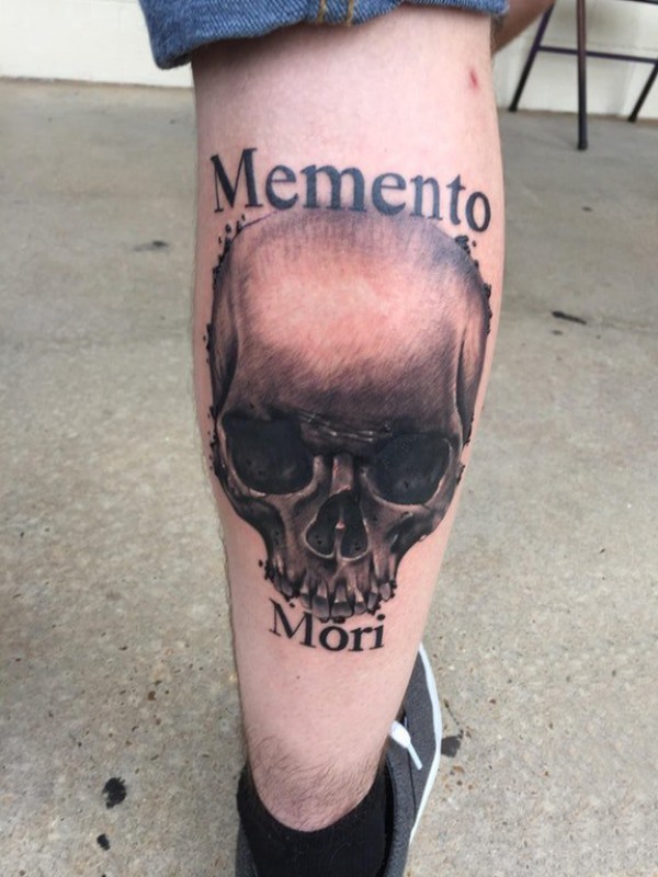 骷髅英文纹身男生小腿上骷髅英文纹身图片