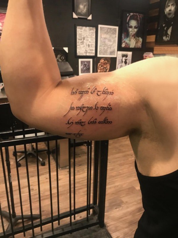 花体英文男生手臂上花体英文纹身图片