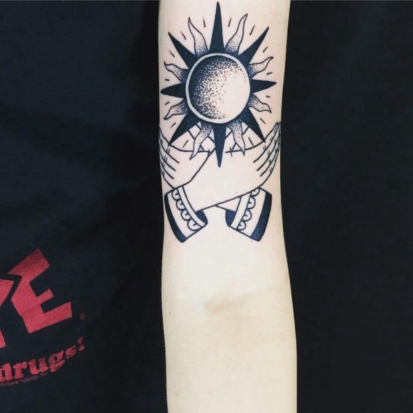 太阳图腾纹身女生手臂上黑色的太阳纹身图片