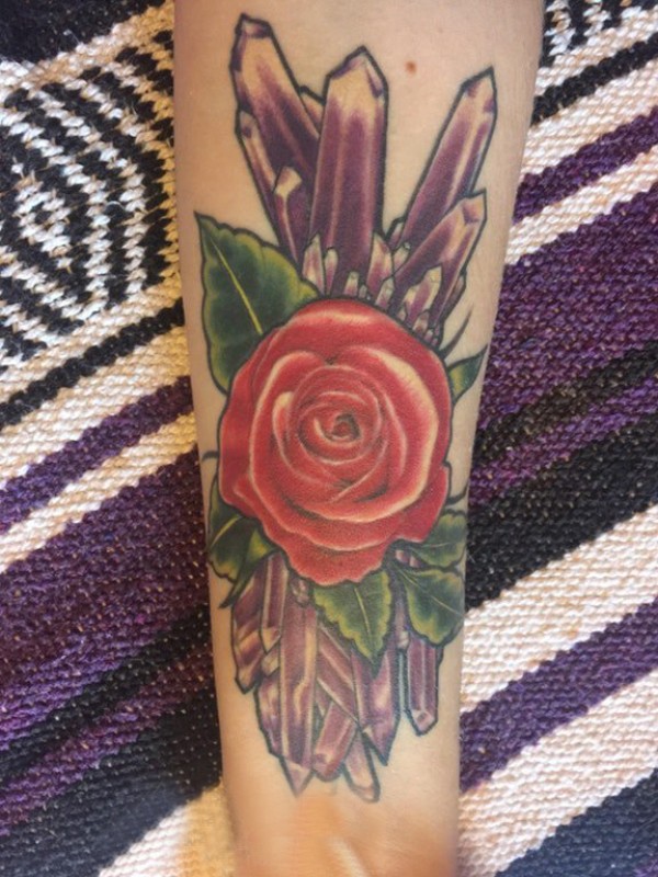 水晶纹身女生手臂上水晶和花朵纹身图片