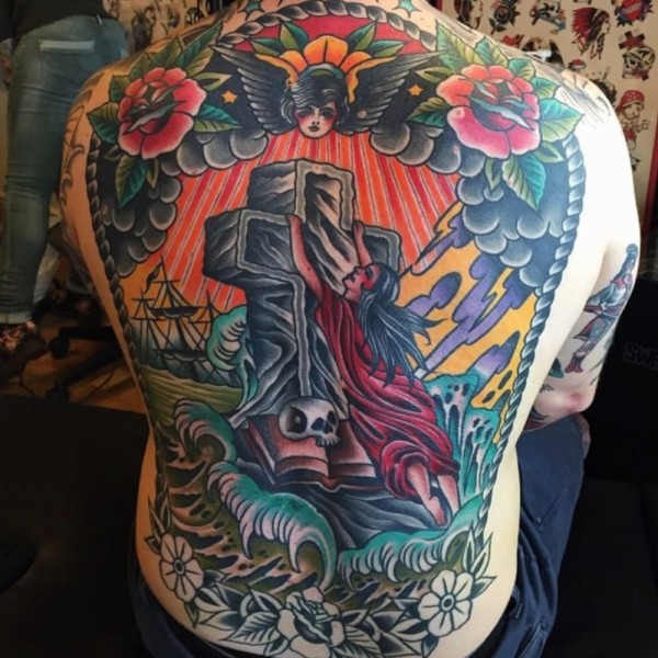 十字架纹身多款彩绘的霸气大面积十字架纹身图案