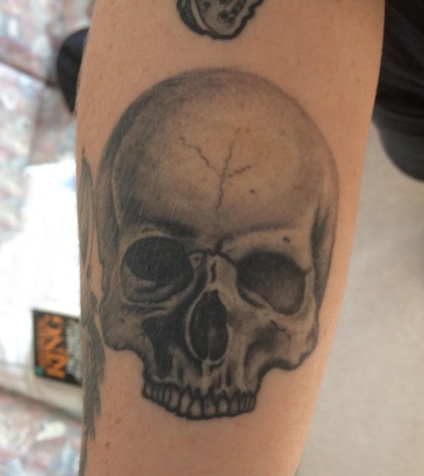 骷髅纹身 男生手臂上黑灰的骷髅纹身图片