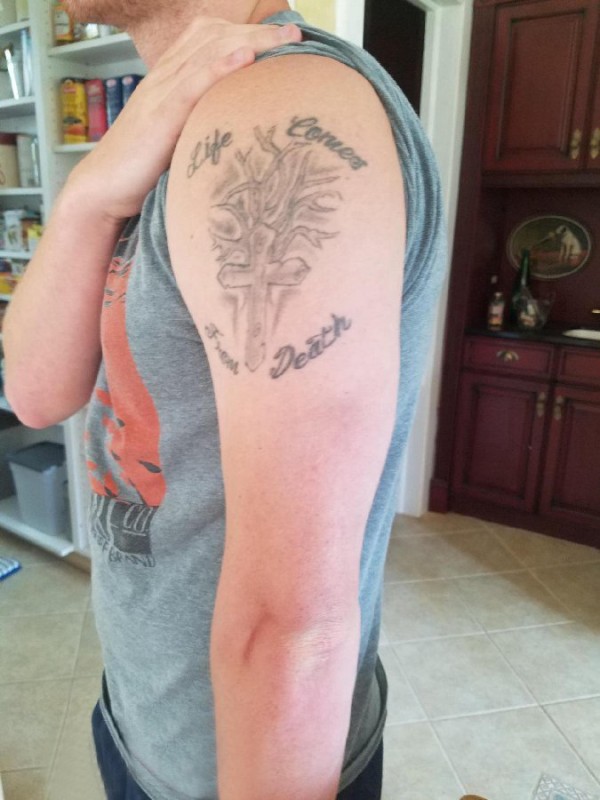 手臂十字架纹身男生手臂上十字架和英文纹身图片