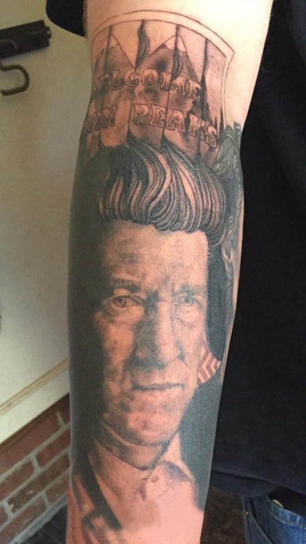 人物肖像纹身男生手臂上黑色人物肖像纹身图片