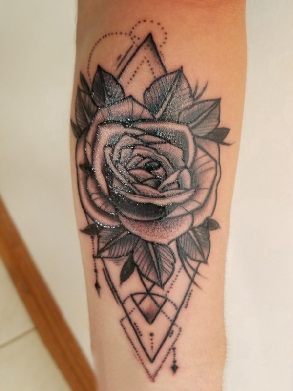 欧美玫瑰纹身女生手臂上黑色的花朵纹身图片