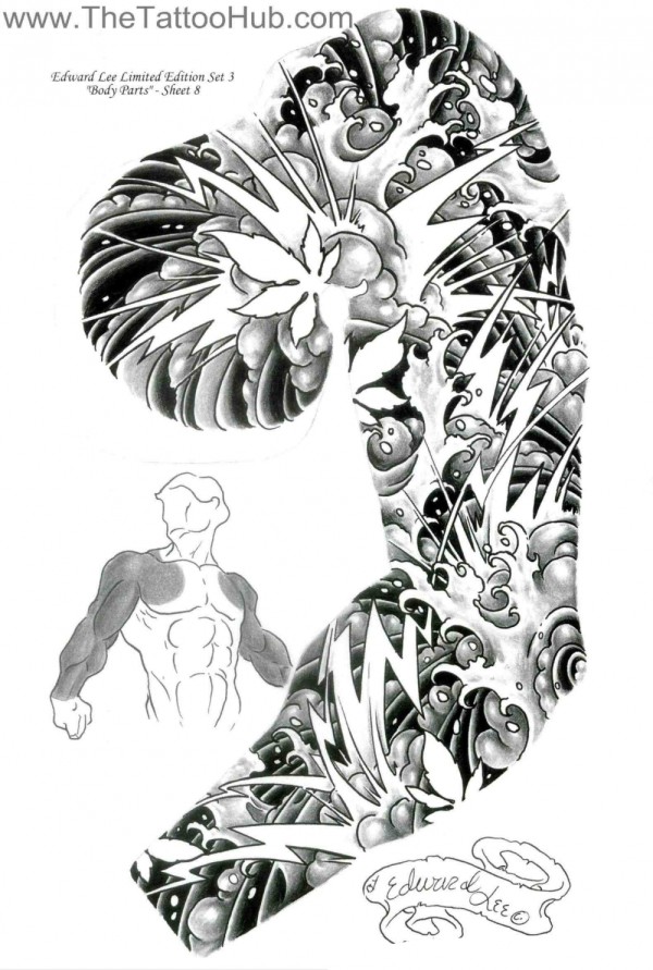半甲纹身 黑灰的图腾半甲纹身手稿