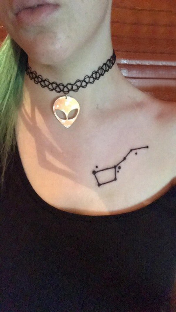 纹身北斗七星 女生锁骨下黑色的北斗七星纹身图片