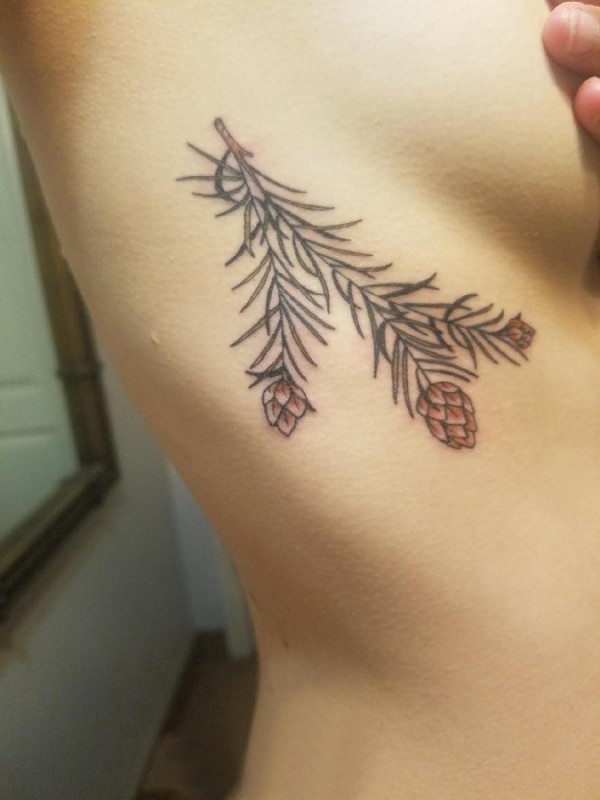 树枝纹身 女生侧肋上的树枝纹身图片