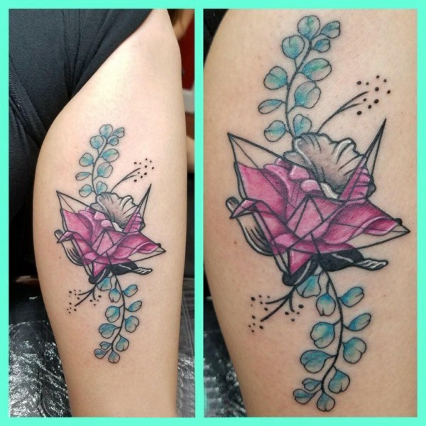 泼墨千纸鹤纹身 手臂纹身女生小清新花朵和千纸鹤纹身图片